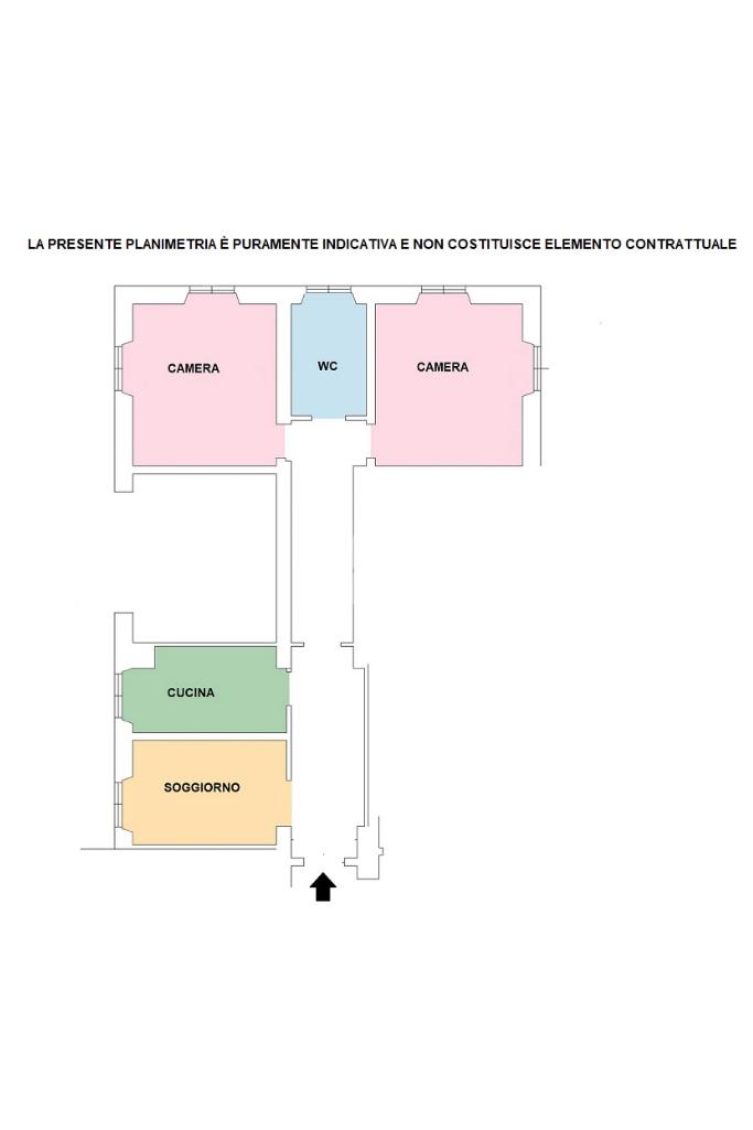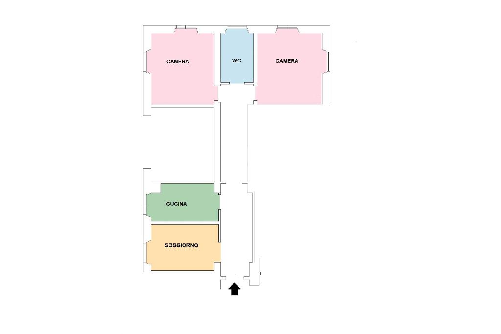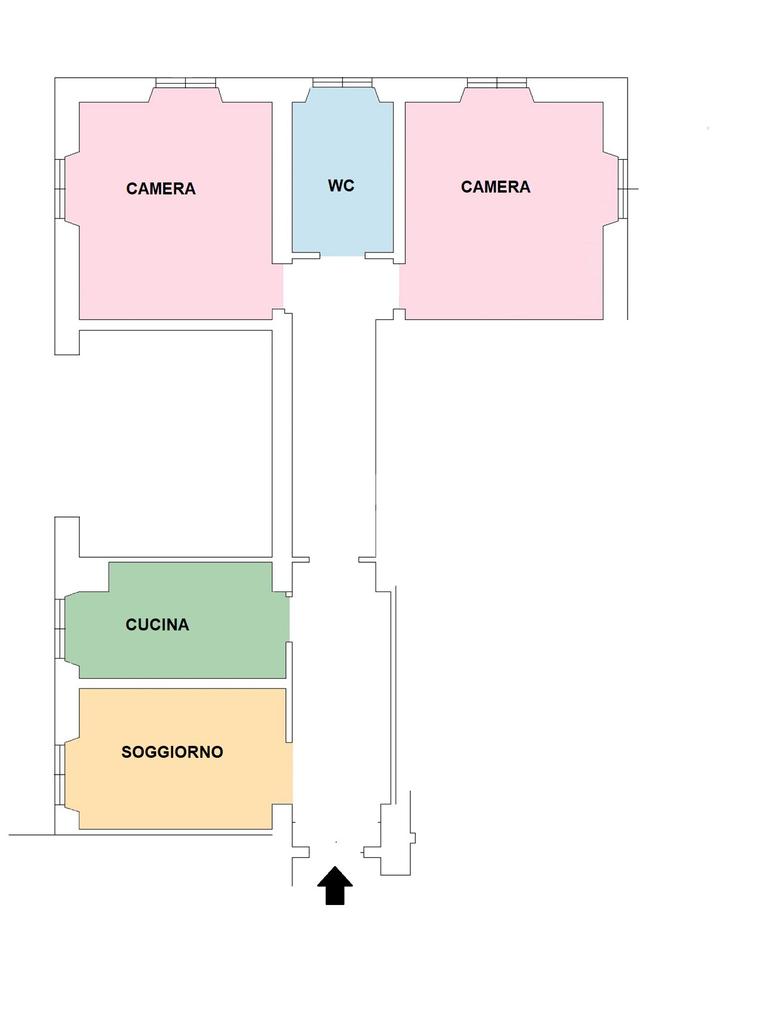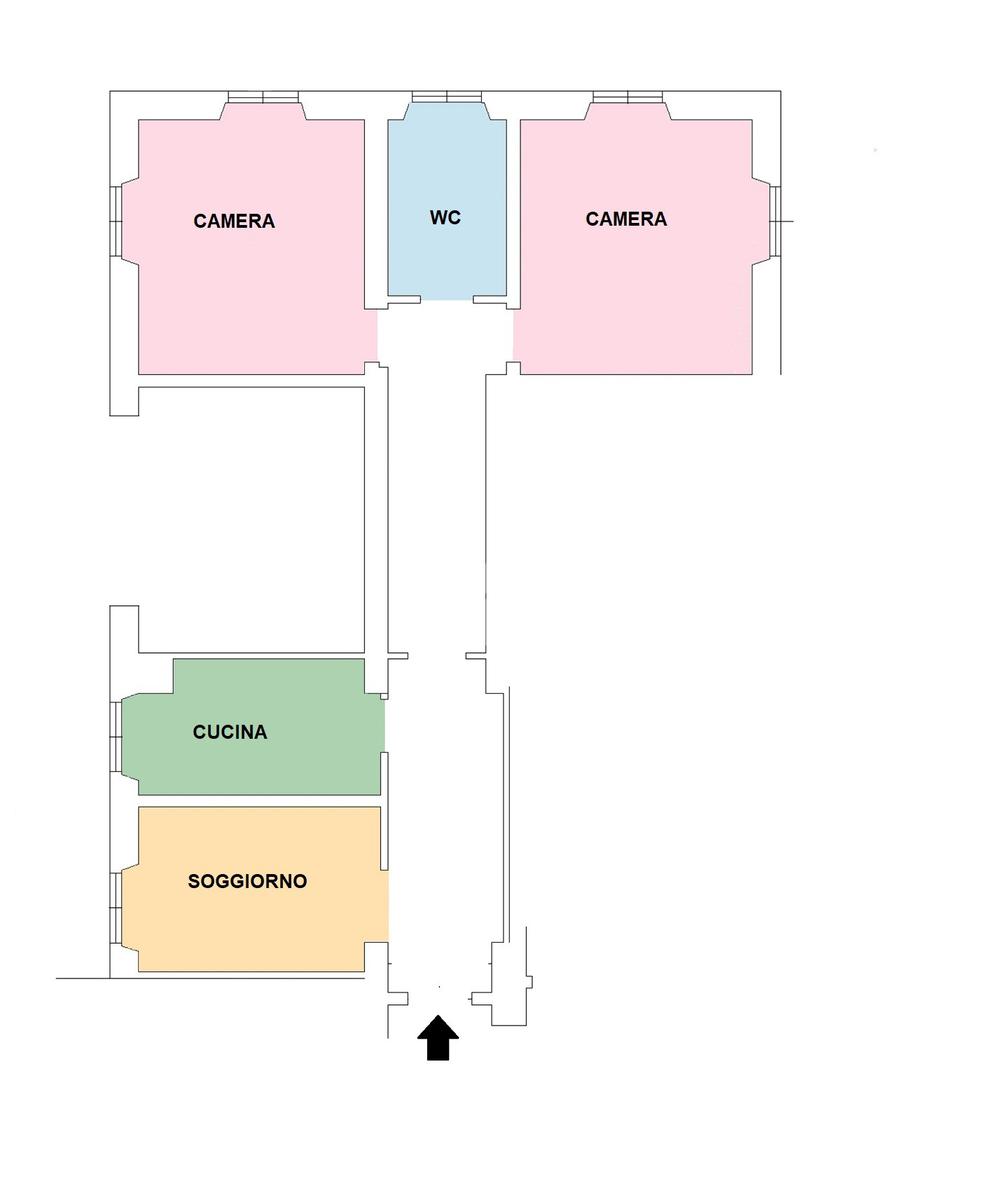 Al suo interno, attualmente, si compone di un ampio ingresso, un confortevole soggiorno, due ampie camere, ciascuna valorizzata da doppia finestra, cucina e bagno completo.