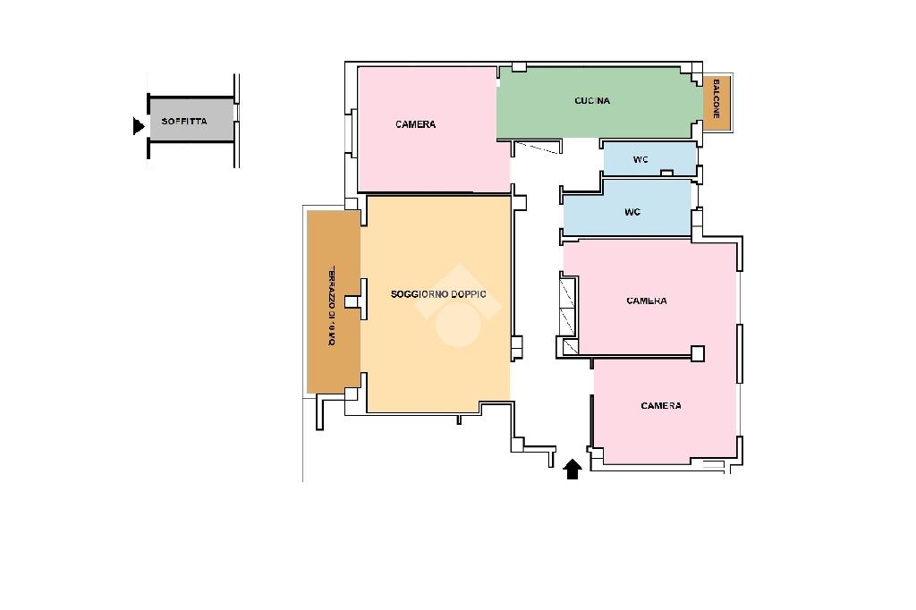 Completano la proprietà due bagni, entrambi con finestra e posizionati nella parte centrale della le caratteristiche peculiari dell'immobile spiccano la duplice esposizione, gli affacci riservati e la facilità di personalizzazione degli spazi soffitta posta al sesto piano si traduce in un valido spazio di deposito, asciutto e dotato di finestra.