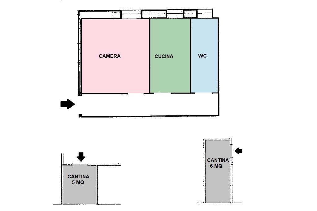 A corredo due cantine adiacenti all’immobile di 5 mq e 6 mq.