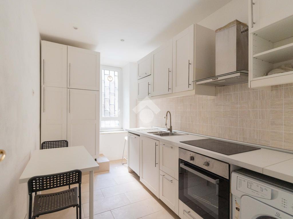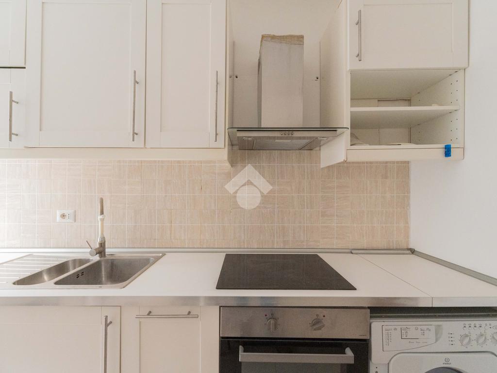 L’ingresso si apre su un corridoio che conduce ai vari ambienti della casa. La zona giorno/notte è ben distribuita e offre uno spazio funzionale, con una finestra che affaccia sull’interno del condominio. La cucina abitabile è completamente arredata e dotata di elettrodomestici, mentre il bagno, finestrato, dispone di box doccia.
